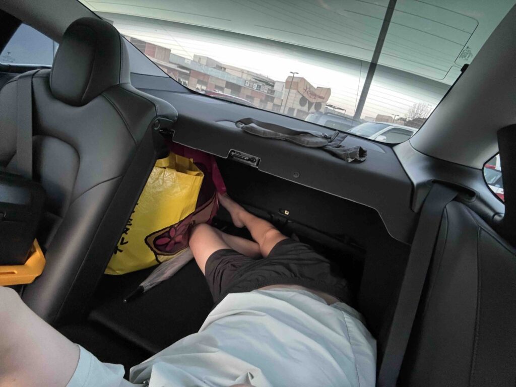 Tesla Model3の二列目を倒して寝るとこんな感じです。